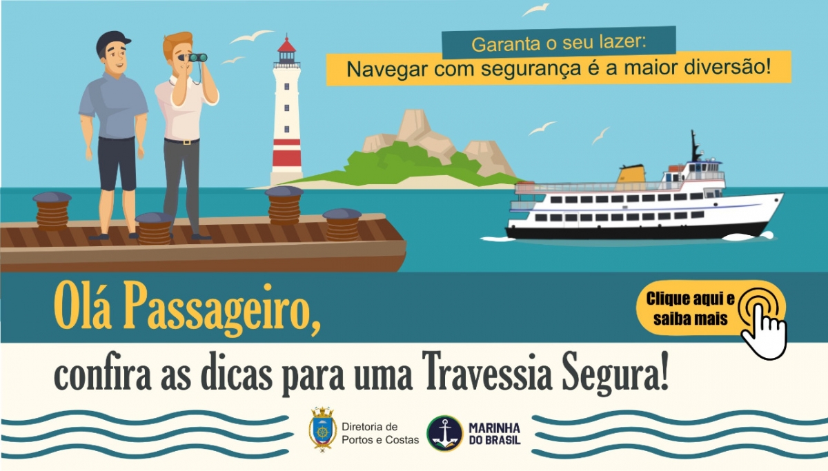Entre os dias 13 e 22 de janeiro, a Marinha do Brasil promoverá a primeira fase da campanha “Travessia Segura”, dentro da Operação Verão 2022/2023, que teve início em 15 de dezembro e seguirá até 28 de fevereiro de 2023 na maioria dos estados do País. A “Travessia Segura” é uma Campanha de âmbito nacional e tem foco especial nas embarcações de transporte de passageiros e turismo náutico, que tem seu fluxo intensificado no período de verão. A ação destina-se a conscientizar os condutores e usuários dessa atividade para a importância do cumprimento das regras de segurança da navegação.